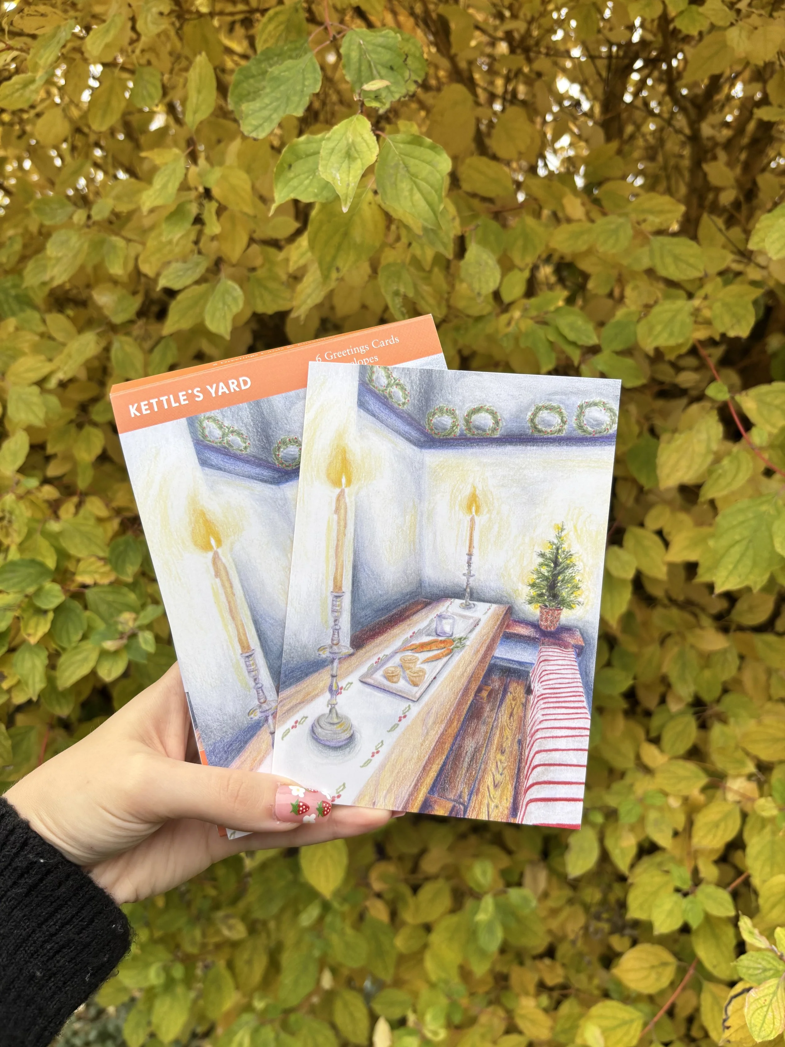 My design was inspired by one of my favourite areas within the kettles yard house, the dinning tabled tucked away in a corner. To know more about what inspired myself and the other winning illustrators for their card designs, you can read more here.