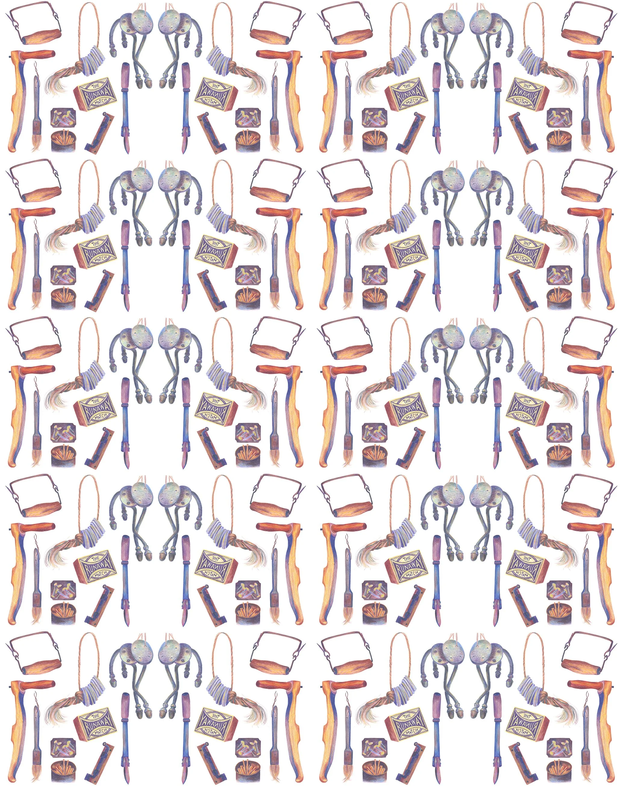 This project was based of the David Parr House and the variety of tools, household items and foliage. Which inspired me to create a series of repeat patterns, based on the life lived within the house rather than the beautiful pre-existing patterns throughout.